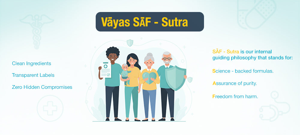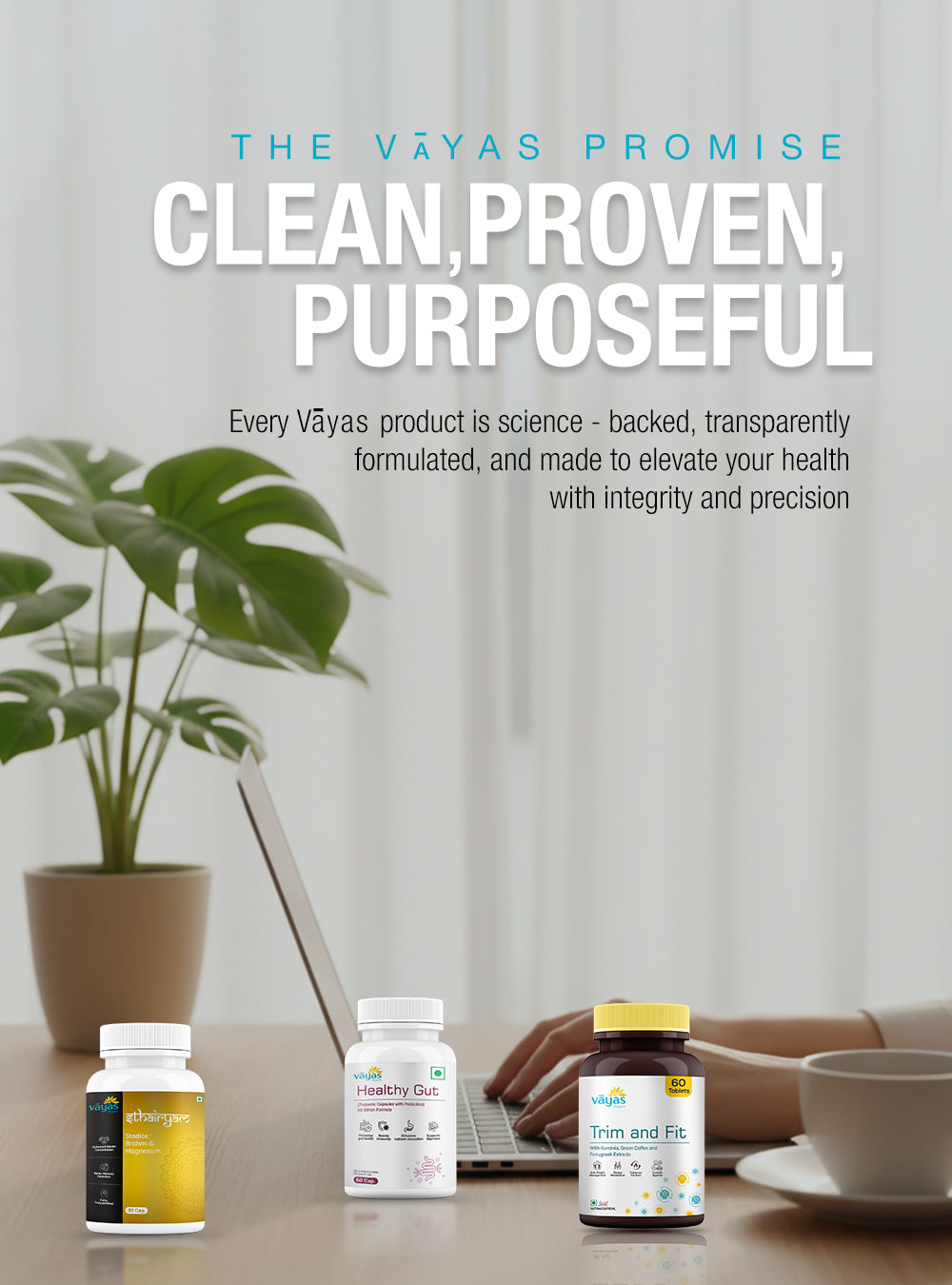 At Vāyas, every formulation is developed with scientific precision and validated by healthcare professionals. Our panel of doctors, scientists, and nutrition experts carefully review each ingredient for quality, safety, and efficacy — ensuring every Vāyas supplement meets the highest standards of wellness.Because when science meets care, better health begins.