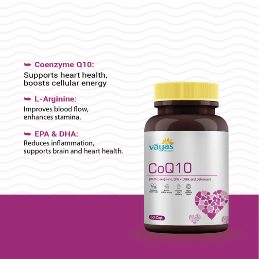 Vāyas CoQ10 with L-Arginine, EPA, DHA & Selenium | Heart Health & Cellular Energy