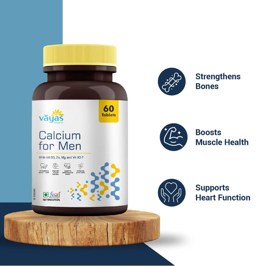 Vāyas Calcium for Men with Vitamin D3, K2-7, Zinc & Magnesium | Bone Density, Muscle & Heart Health